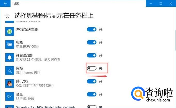 弹出的界面,我们点击选择哪些图标显示在任务栏上;