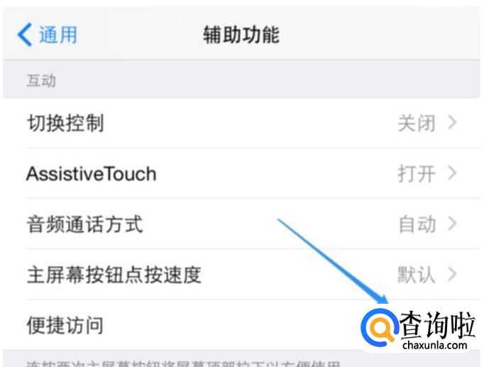 在列表中我们可以看到,"便捷访问",这个选项可以控制是否使用半屏,即"单手模式".如果不想使用的话,关闭即可.