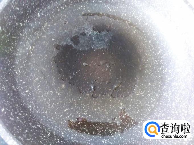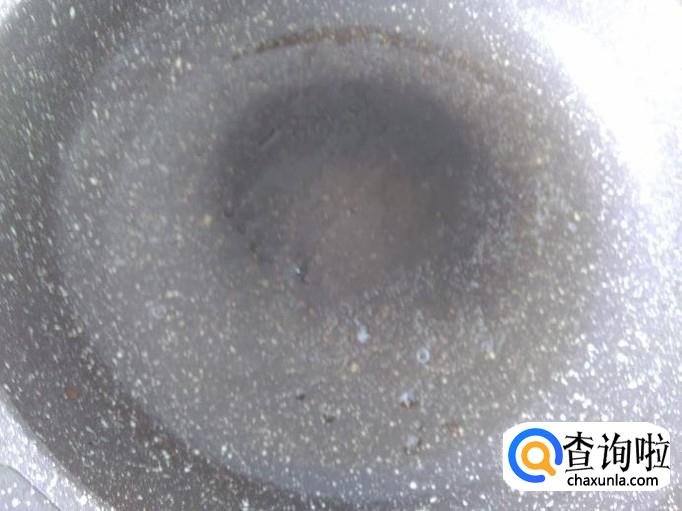 把芋头粉团放到锅里用锅铲压薄,用小火煎,一边煎一边轻轻要动平底锅。