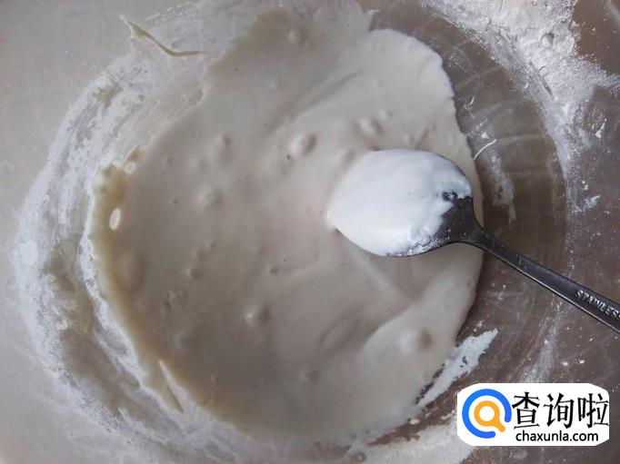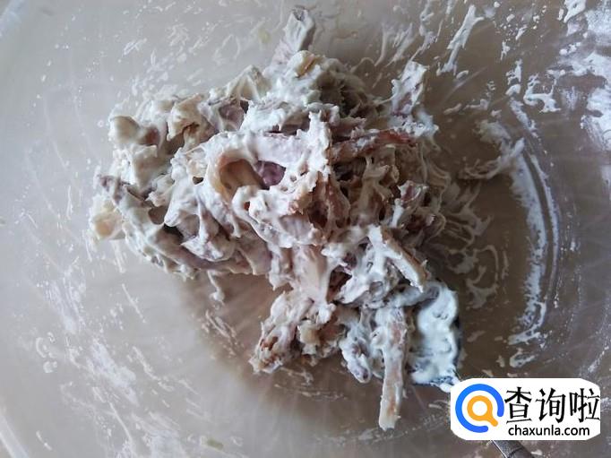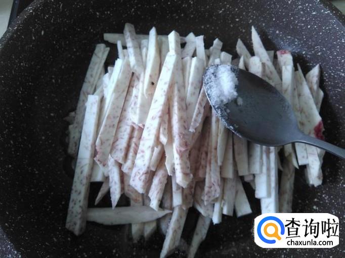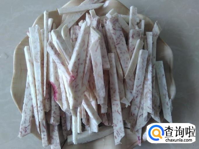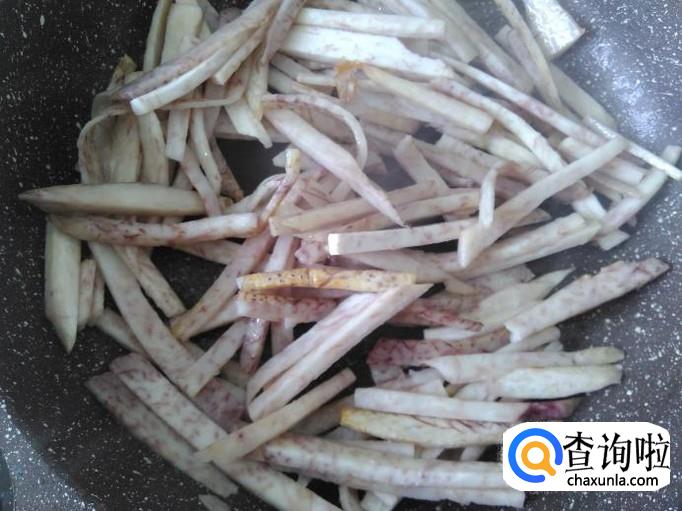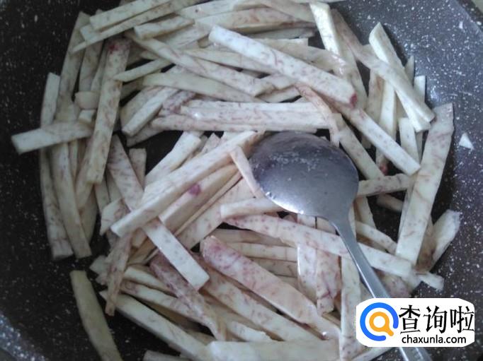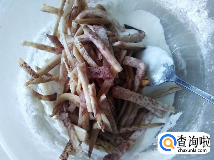 然后把炒好的芋头丝铲到糯米糊里搅拌均匀。
