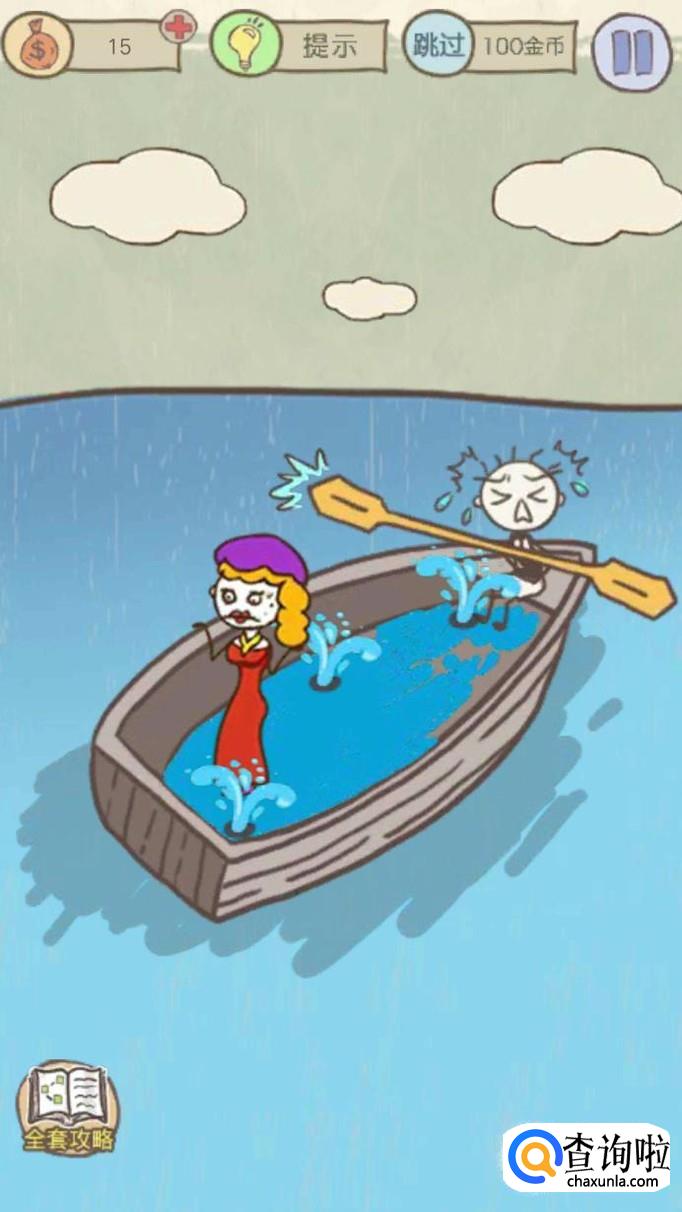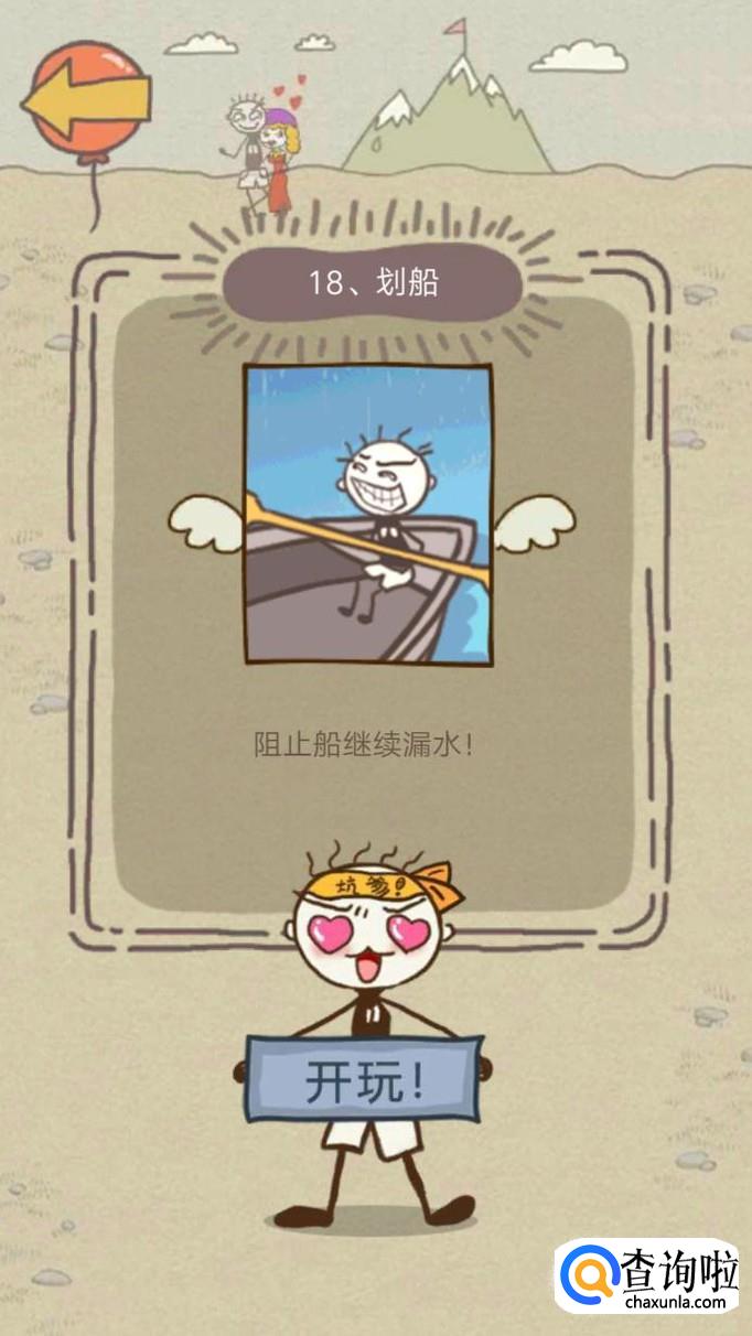 第十八关:等小船的三个漏水点都出来的时候,同时用手指堵住漏水处,就可以顺利过关了。