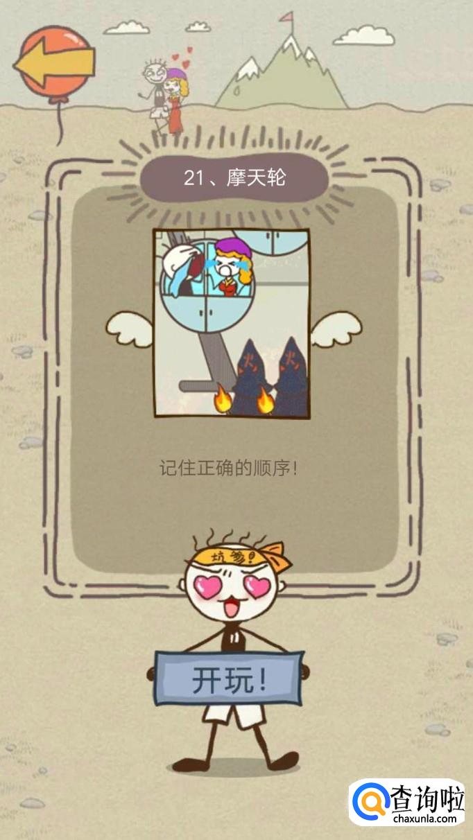 第二十一关:这一关没什么技巧,但是考验玩家们的记忆力,如果记不住顺序的话,可以拿笔和纸记一下,小编就是这么过关的哟!(哈哈哈)