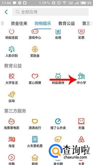 进入更多全部应用界面,在“教育公益”中点击“中小学”进入。