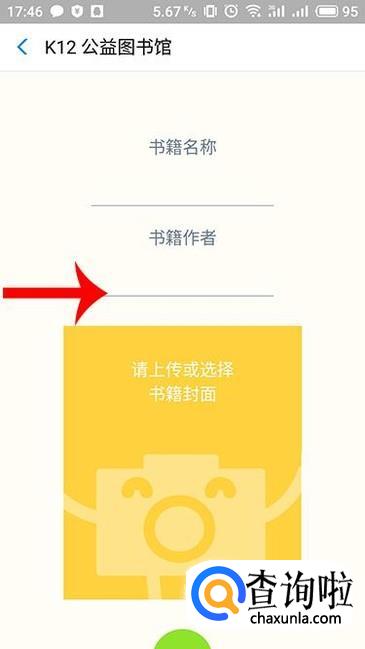 进入添加界面,输入书籍名称以及书籍作者信息,然后还需要上传一张书籍封面。