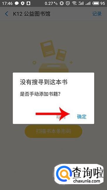 扫描完成之后,如果这本书籍没有登记在系统里的话会提示你是否手动添加,点击“确定”