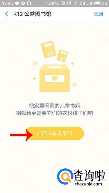 要想捐赠图书的话需要扫描书本的条形码,点击“扫描书本条形码”