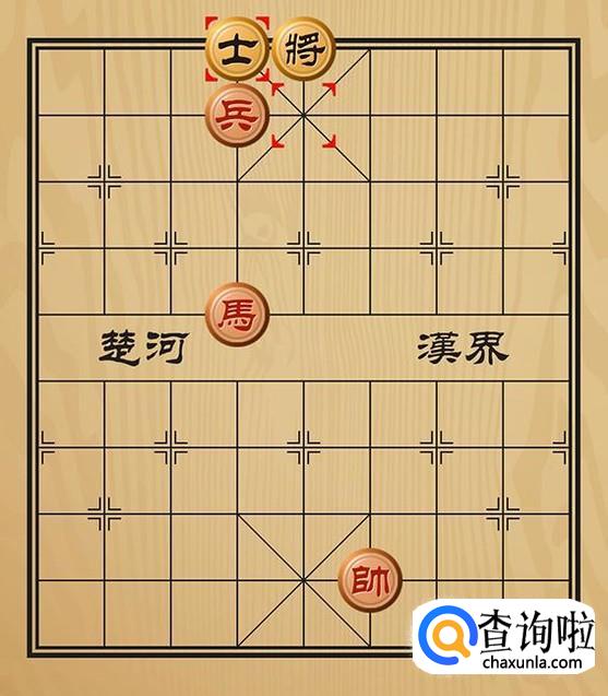 红方先走帅五平四,黑方走士5退4(若是黑方不走士5退4,而是走将6进1,则红方只需走马一退三,下一步无论黑方走将还是走士,都会被黑方吃掉一个士)。