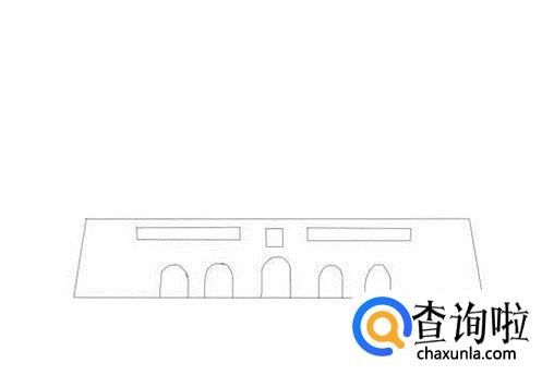 再在天安门的城墙体上我们画出城门洞,然后在上面画出其它构件,如图所示: