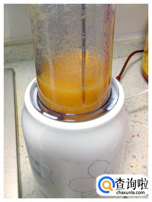 将苹果块放进榨汁机里,加上半杯用冰糖融化的凉白开水,按下榨汁键。