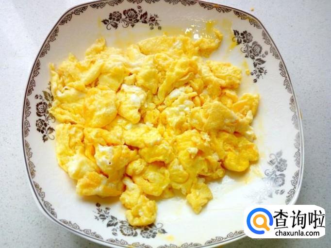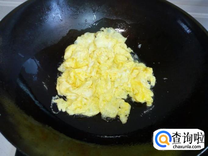 用锅先把鸡蛋炒出来,炒至七分熟盛出备用。