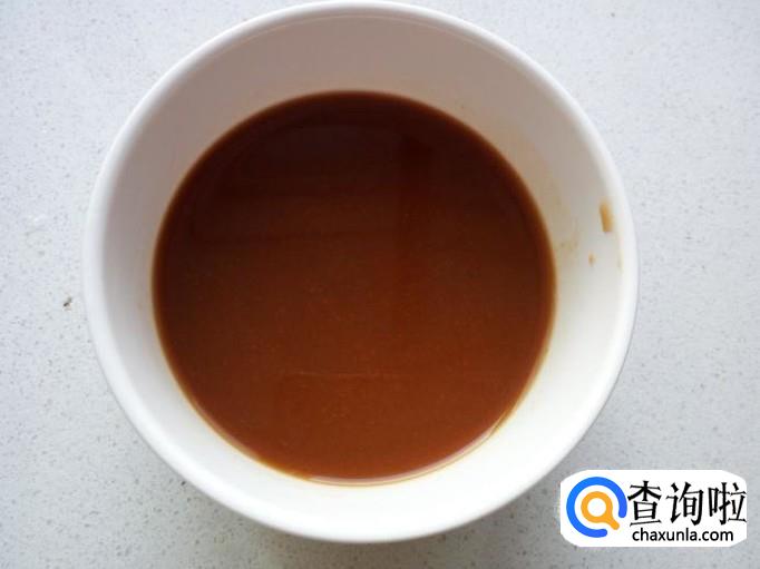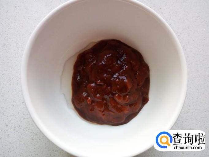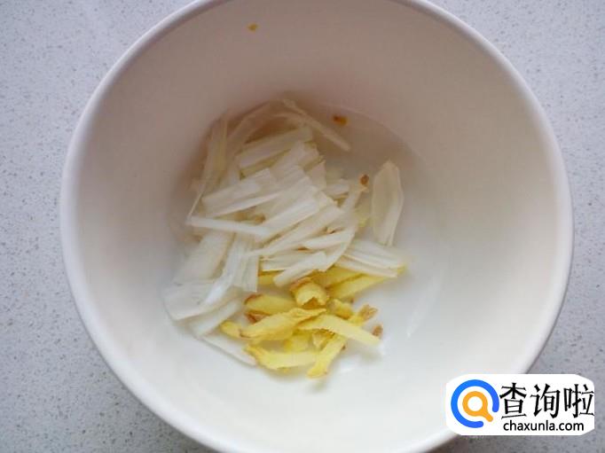 碗里放入两匙儿豆酱,兑少许水稀释一下。切好葱,姜,备用。