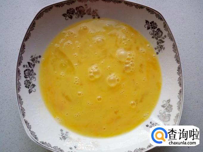 鸡蛋打入盘中,搅拌成鸡蛋液。