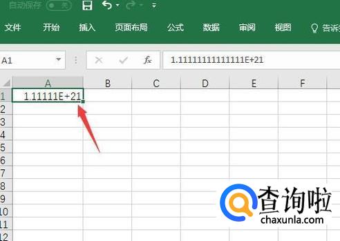 当输入一串很多数字1的时候,会发现出现以下的情况,会出现一个E+21这样的形式,然后想设置的话,直接点击单元格,然后点击设置单元格格式,这样才能进行设置会更好一些。