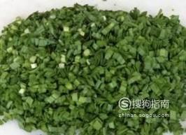 将韭菜一根根清理好,去除老叶烂叶后洗净,然后细细的切碎。