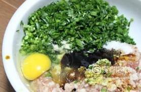准备一个大盆,将剁好的瘦肉,切好的韭菜、葱、姜、蒜放入盆中,再打入一个鸡蛋,加入盐,酱油,搅拌均匀,这样就韭菜猪肉饺子馅就做好啦!