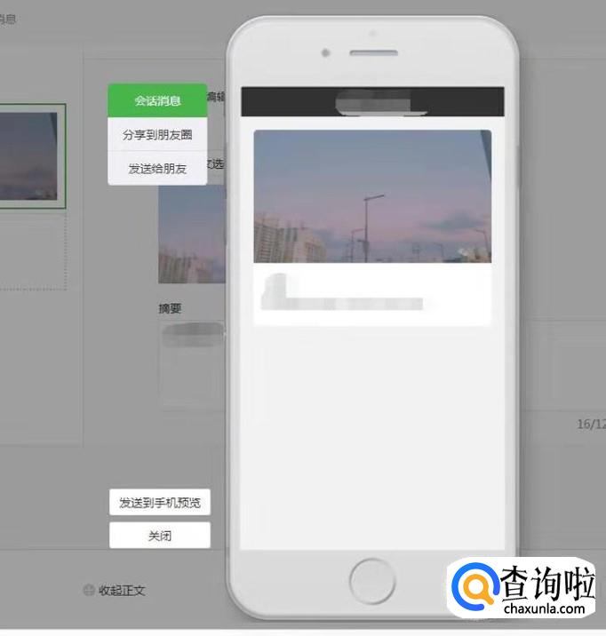 第一个“会话消息”预览,是在公众号推送消息时的预览,一般都是在手机上浏览公众号较多,所以这个是在手机上看到的样子。