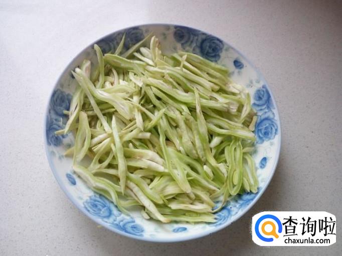 芸豆用水清洗干净,控干水分,切成细丝,备用。