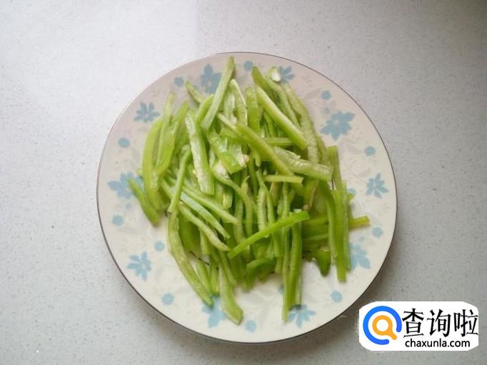 青尖椒用水清洗干净,控干水分,切成丝。切好葱,姜,蒜,备用。