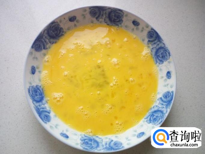 鸡蛋打入盘中,搅拌成鸡蛋液。