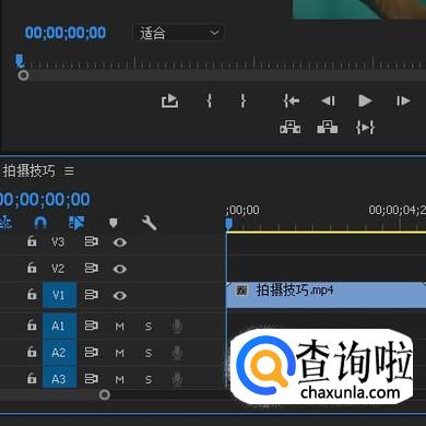 鼠标点住此音乐文件,直接拖拉到序列面板的音频轨道1这里。
