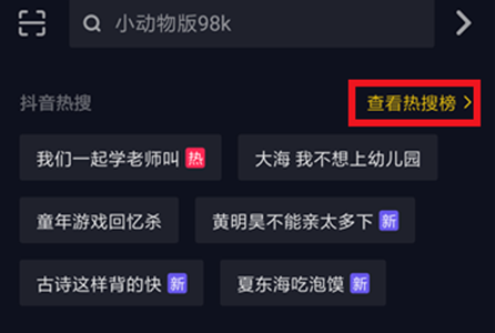 5、想要查看完整的热搜榜的话可以在搜索界面中点击【查看热搜榜】;