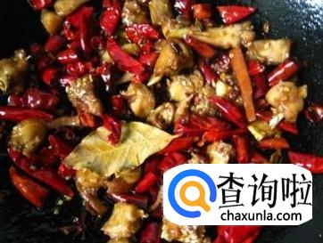 然后我们向锅中加入辣椒与花椒,炒匀,然后加一点点水,盖上锅盖,焖10分钟,然后我们加一些醋,味精,炒匀,起锅,麻辣兔肉就做好了。