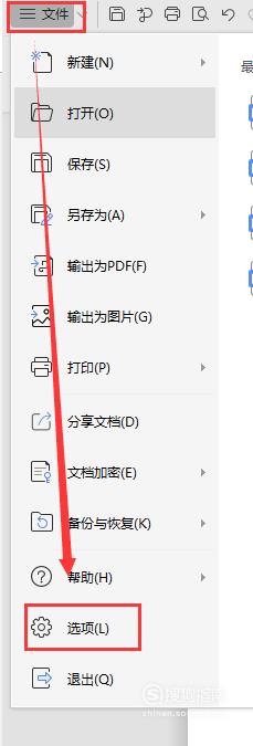 确定文档里存在分页符的前提下,点击左上角文件,选择选项。