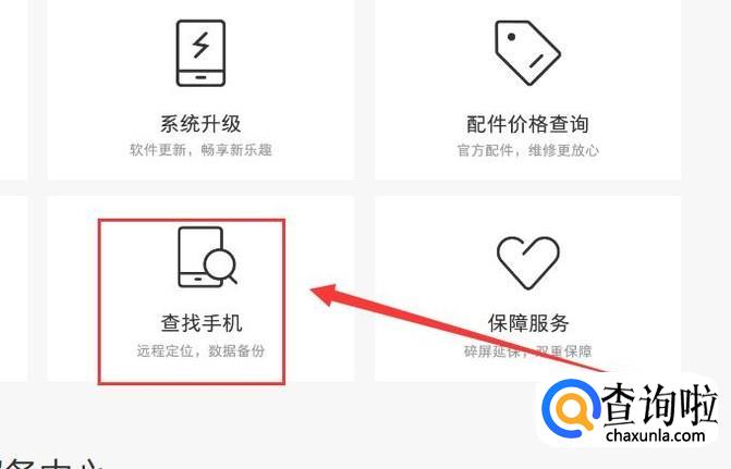 进入之后,点击“查找手机”,如图所示。