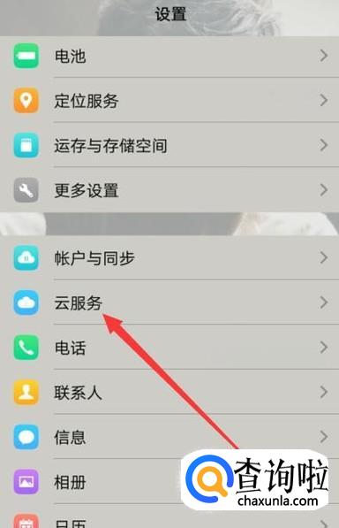 打开手机,进入设置,找到云服务,点击并进入,如图所示。