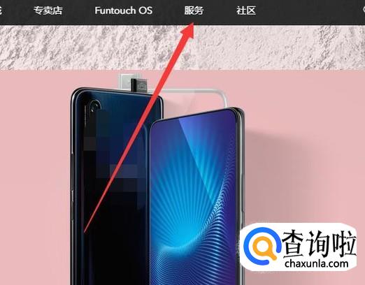 进入vivo手机官网,点击“服务”进入下一页面,如图所示。