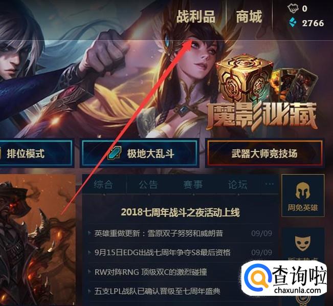 首先你要做的就是登录到游戏的客户端,如下图,然后在右边找到战利品如下图。,然后点击进入。