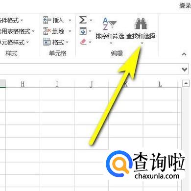 鼠标点击开始选项卡,再看右边的编辑组这里,点击:查找和选择