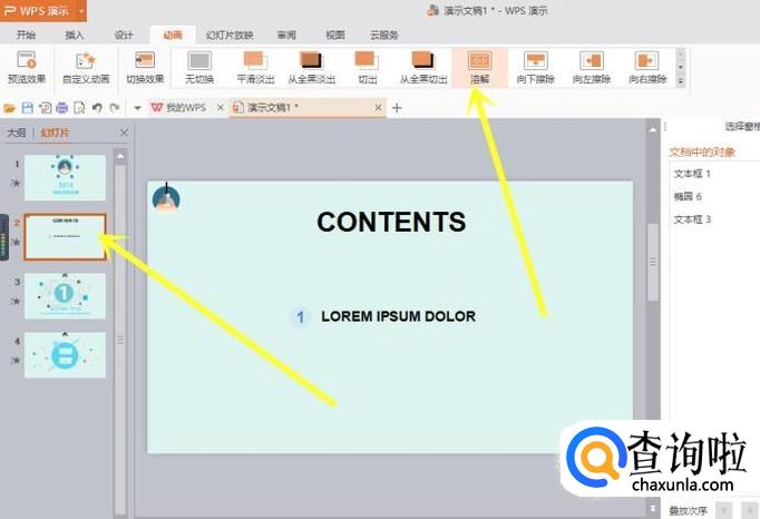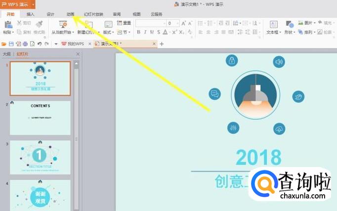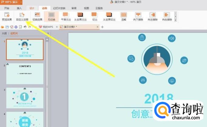 首先我们打开我们需要进行动画自定义的PPT文件,然后选择软件上部的 动画 选项