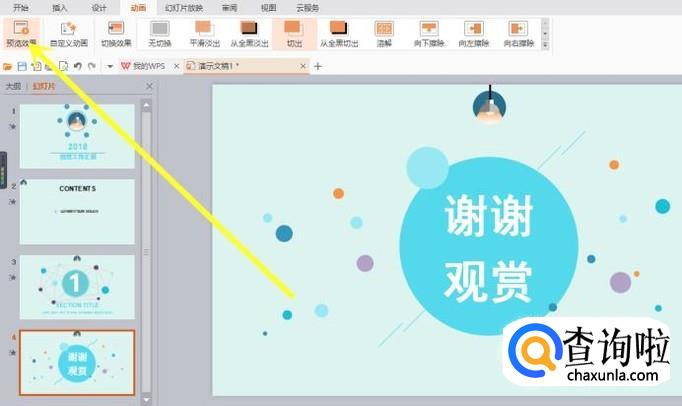 然后我就可以选择不同的ppt页,对每张ppt的切换动画进行更改了,还可以点击 效果预览 选项进行效果的预览。