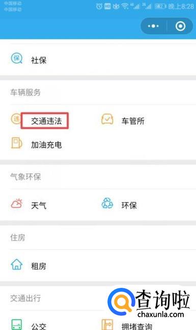 弹出的界面,我们点击交通违法;