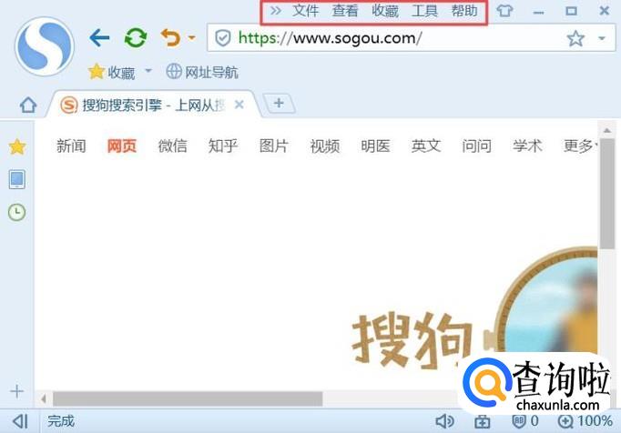 进入浏览器之后,我们可以看到系统默认的菜单栏是打开的,如图所示;
