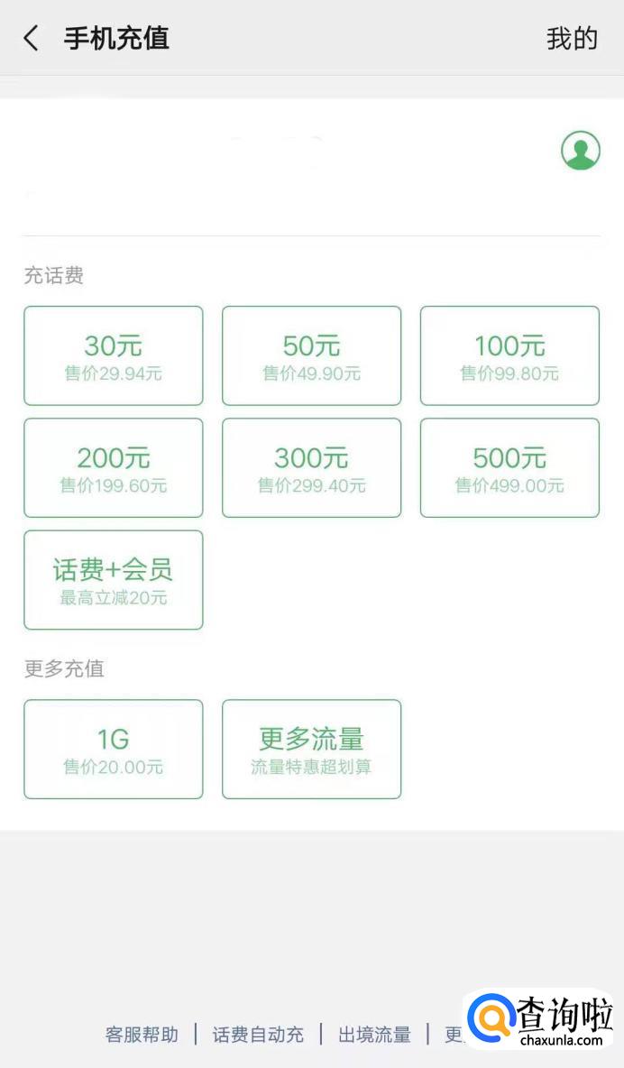 首先我们可以看到正常的微信充值页面,上面并没有10元的充值选项,最少都是30元。