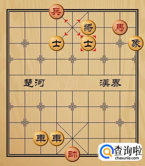 红方兵四进一将军,由于红方马的作用,黑方只能士5进6吃掉红方的兵。