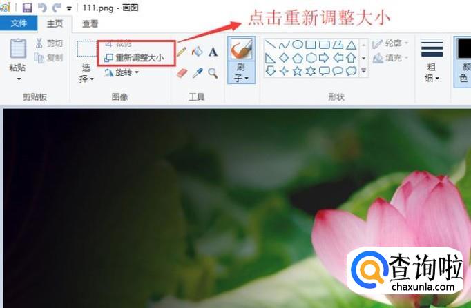 最后回到画图的主界面,我们就会看到图片已经被压缩了,如下图所示