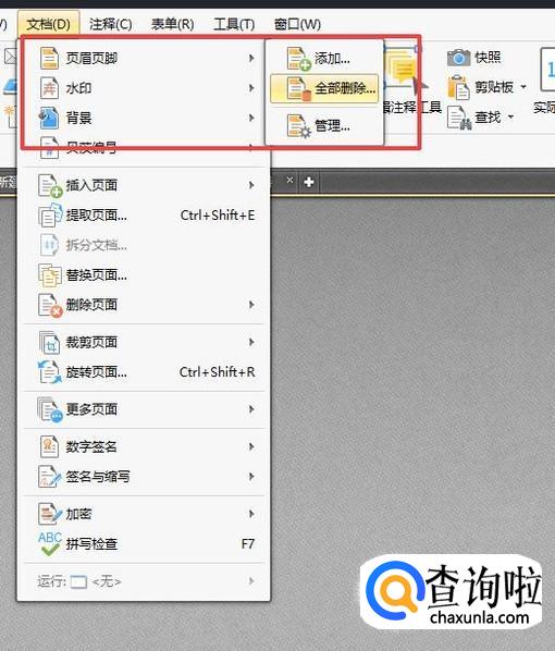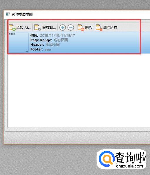 可以选择页眉页脚工具中的管理选项,在管理工具中可以显示文件中的全部页眉页脚,点击添加或者编辑就可以对页眉页脚进行编辑,需要删除页眉页脚,选中之后,选择删除或者全部删除即可。