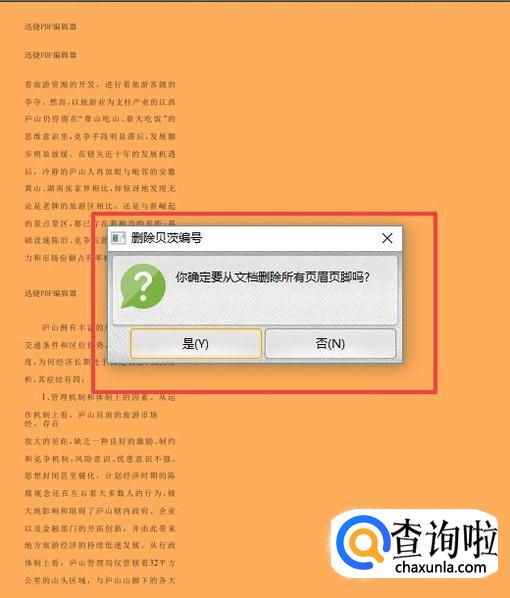点击删除后,就会有这样的弹窗显示,点击确定就可以将文件中的页眉页脚全部删除了,那么如果不需要全部删除应该怎么办呢。