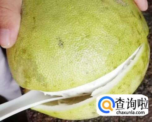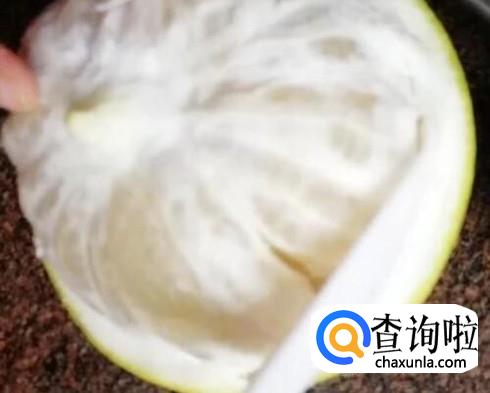 划开后,用手或勺子剥开柚子皮,将柚子皮去掉,柚子就剥好了。