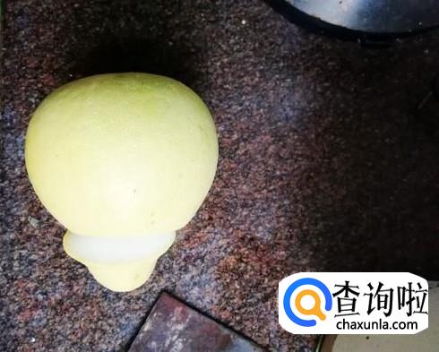 划好一圈后,用勺子或手将底部的柚子皮去掉。