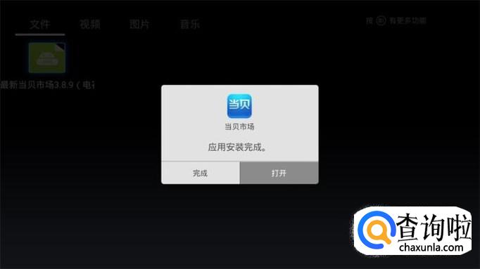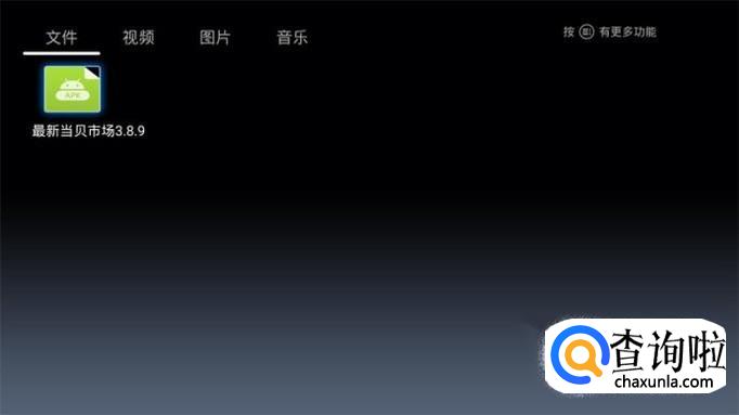 将U盘插入LTTV联通电视的USB接口,系统会自动检测出外置存储设备,打开文件管理,如果没有显示页打开LTTV联通电视我的媒体中心或媒体播放器,选择USB设备。然后找到当贝市场apk选择安装。