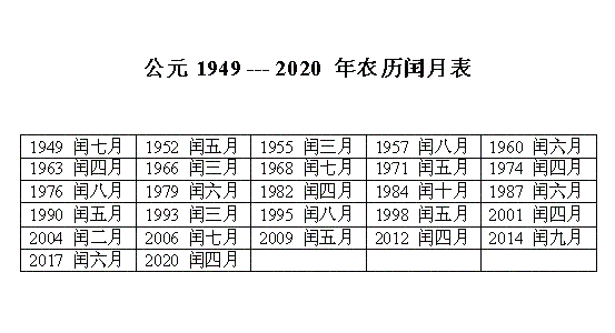 2017 闰六月大 2020 闰四月小 2023 闰二月小 2025 闰六月小 2028 闰五月小 2031 闰三月小