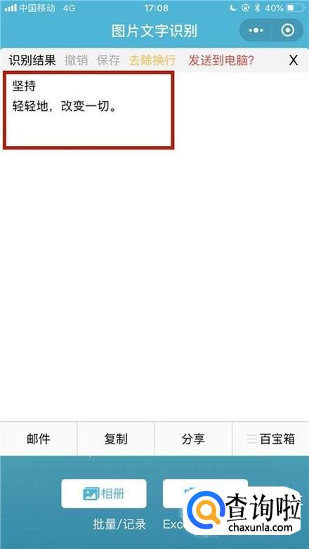 通过以上操作,我们就成功识别出了图片中的文字了。你学会了吗?赶快动手试一试吧。