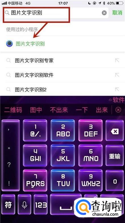 然后输入图片文字识别并点击图片文字识别小程序,如下图所示。