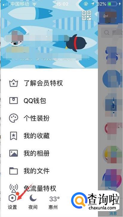 首先我们登录qq后点击左上角的头像进入到qq的设置功能。