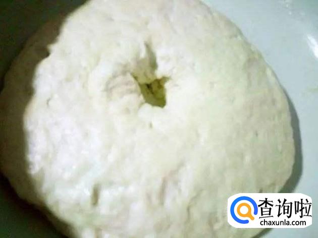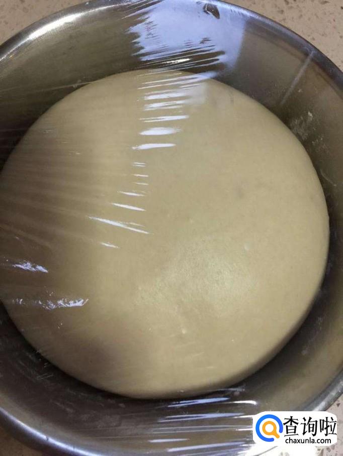 把揉好的面团用保鲜膜盖上,然后放置一边等待发酵,一般发酵时间长短与温度有关,天热就发的快,等看见如蜂窝状就可以了。