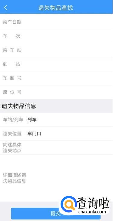 遗失物品查找表中,先把自己的详细信息填写清楚,再将列车车次以及位置,填写好就可以了。